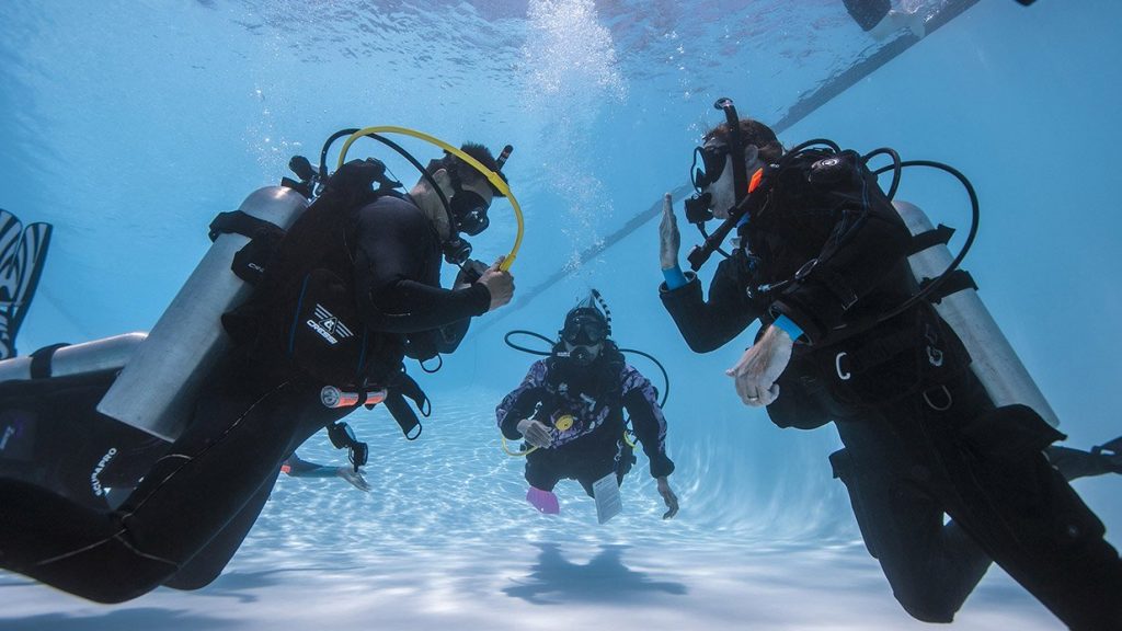 Rond een optionele sessie in het water af, waarbij je duikuitrusting in elkaar zet, afdalingen en opstijgingen maakt, en duikvaardigheden die je niet meer zo goed weet opnieuw oefent.